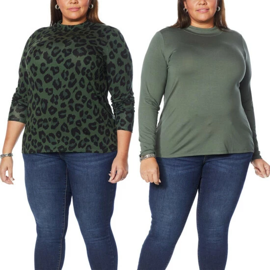 G by Giuliana 2-pack EcoLuxe Mock-Neck Long-Sleeve Tees