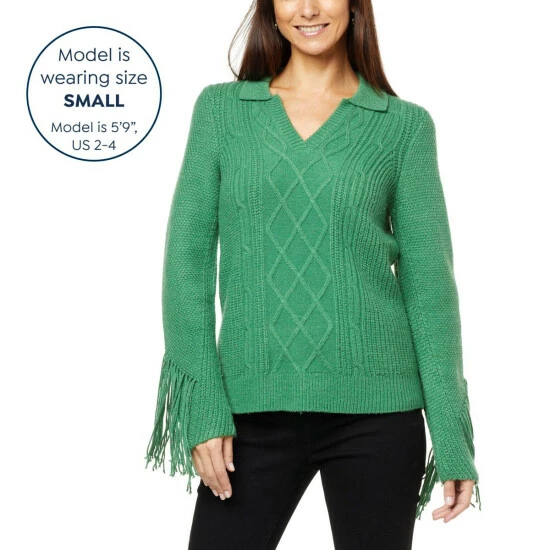 G by Giuliana Black Label Cable Knit Polo Sweater with Fringe