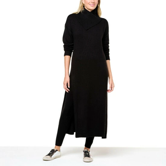G by Giuliana Black Label Front Slit Turtleneck Maxi Sweater