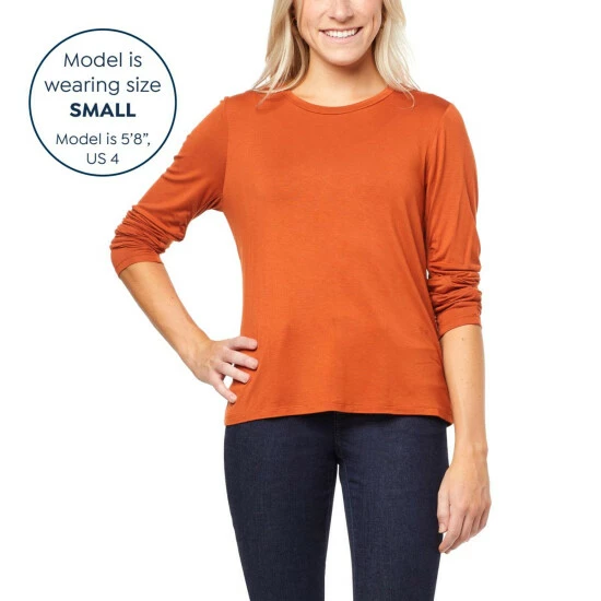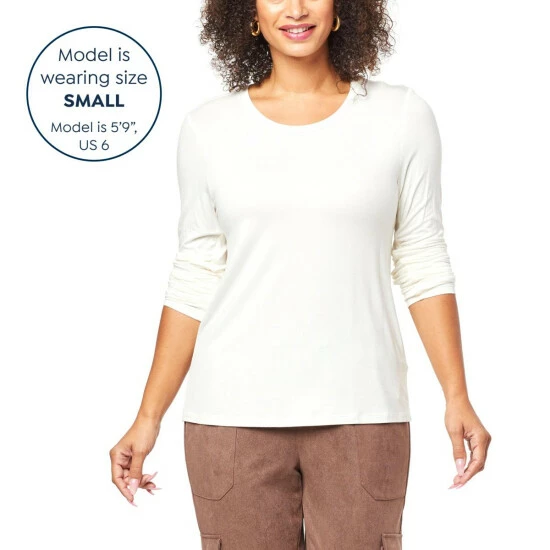 Soft and stretchable, this long, shirred sleeve t-shirt is a simple, but stylish wardrobe staple you can wear year-round.