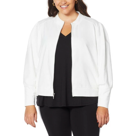 Somewhere between loungewear and casual weekend wearlies Giuliana’s LounGy collection. Top off your new, everyday more casual uniform with this super-soft French terry knit bomber jacket.