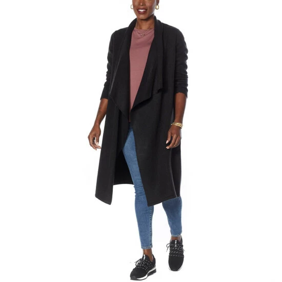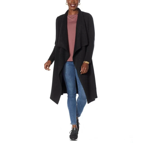 Sometimes your apparel speaks for you. Make a statement without saying a word thanks to the cascading element of this drama cardigan.