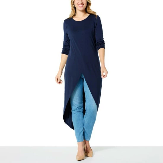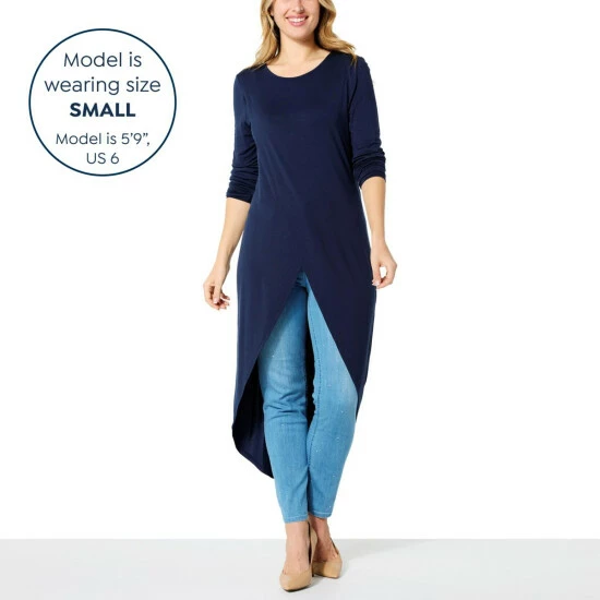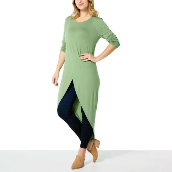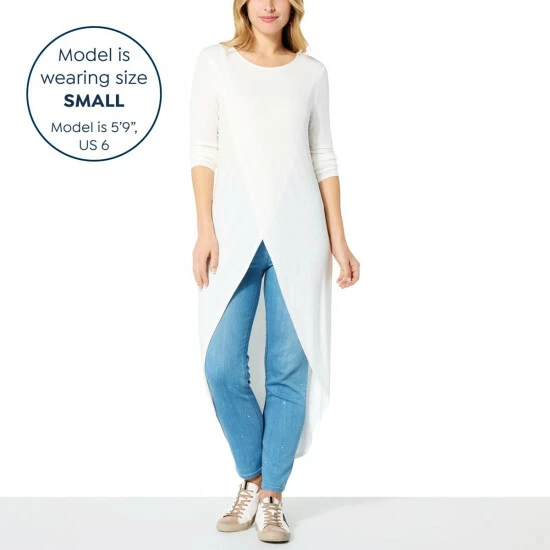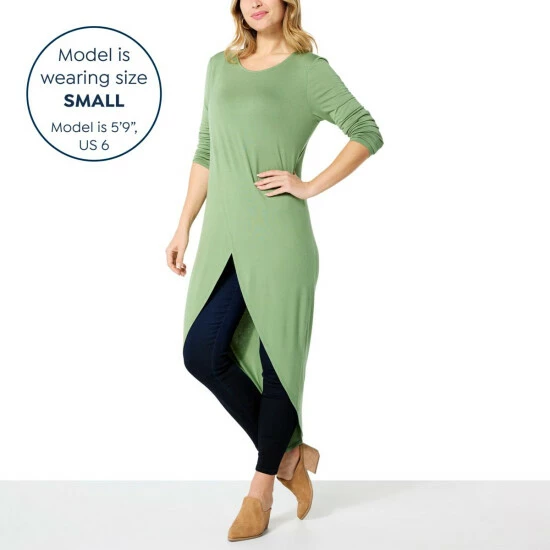 Recycle your favorite looks with this simple yet chic, tulip-hem drama top from G by Giuliana. Crafted out of soft, sustainable knit fabric, it adds an ethically stylish look to any jeans, leggings or other bottoms in your closet.