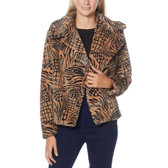 Maybe it’s the faux fur keeping you warm, or maybe it’s your own fiery fierceness that ignites when you throw on this statement piece from G by Giuliana. The shorterlengthand mixed coat/cardigan silhouetteare wildly hot this season, while the exaggerated collar and woven satin lining helpbring the heat wherever you go.