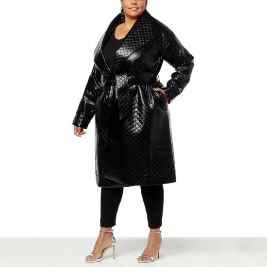 Chic allover quilting runs the length of thisbeltedcoat that adds a daring outer layer to any chilly-day look.A faux leatherfinish, oversized shawl collar and longerduster length, creates a trendy statement piece that pairs well with your go-to boots.
