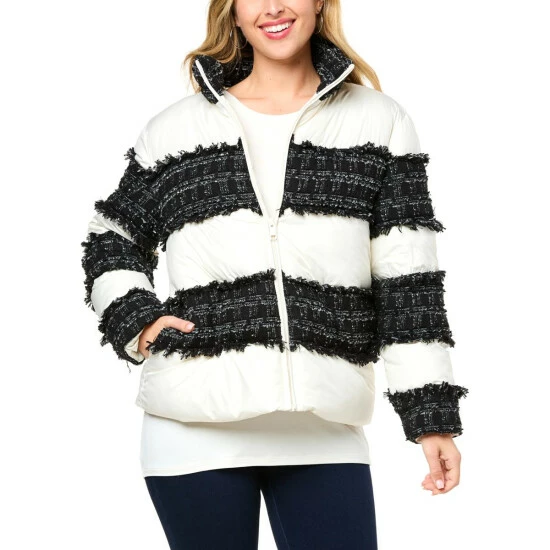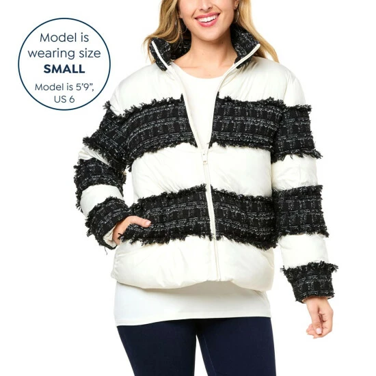 G by Giuliana Black Label Tweed Detail Puffer Coat