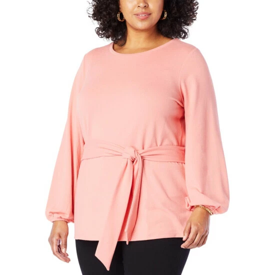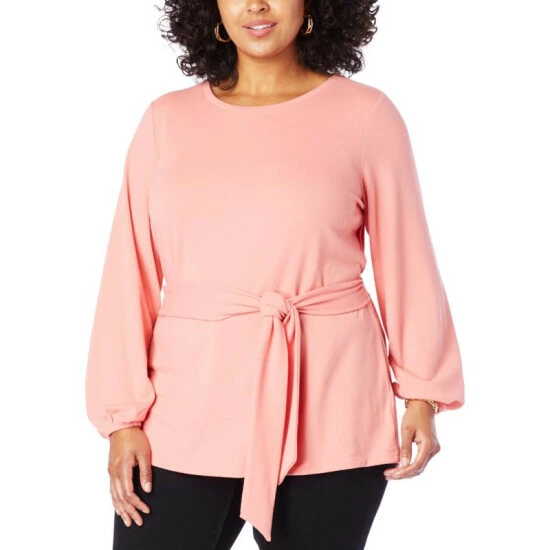 Long, poofy balloonsleeves and a cinched tie waist add a figure-flattering,flirtaciousvibe to this soft Hacci knit tunic from G by Giuliana.