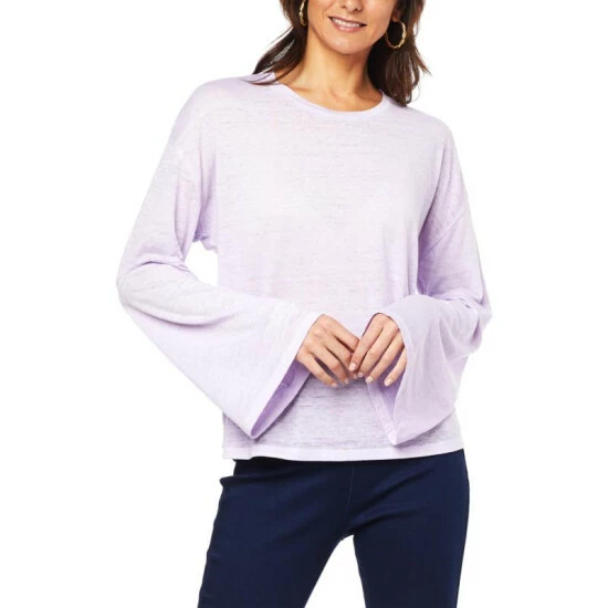 Fashion burnout? Update your everyday look with this excitingbell-sleeve top from Diane Gilman.