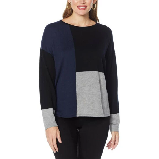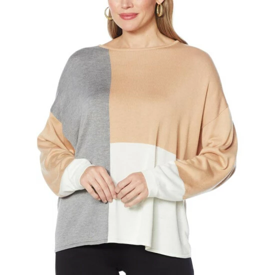 Relax into the moment wearing this roomy, lightweightsweater with a super-soft, bamboo-blendhand and a bold, colorblock design that pops.
