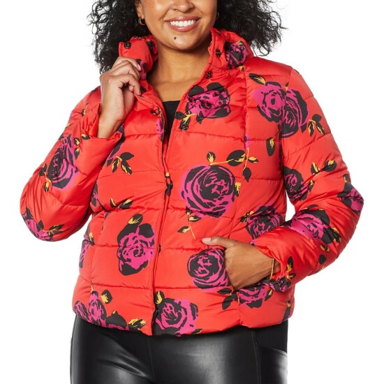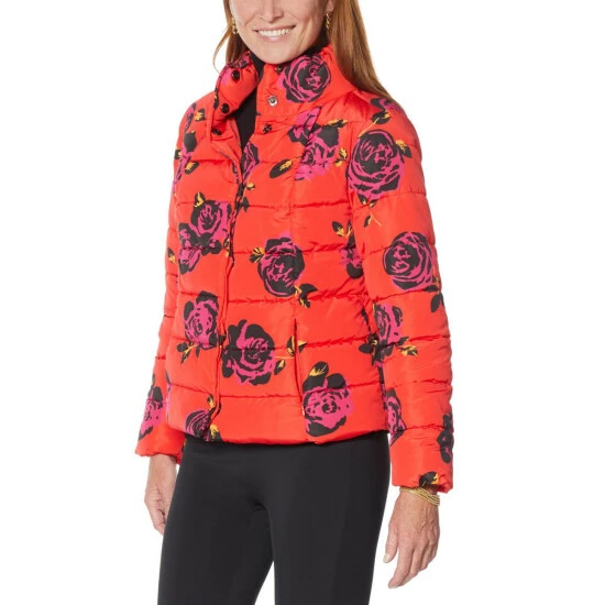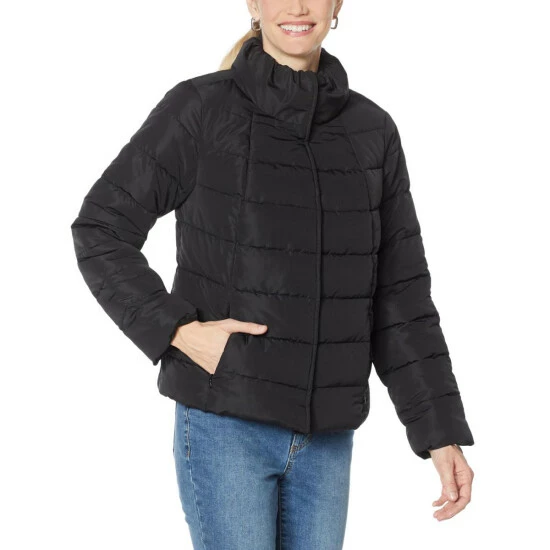 Bundle up without feeling weighed down in this snap-front puffer jacket complete with pockets to keep your hands warm.