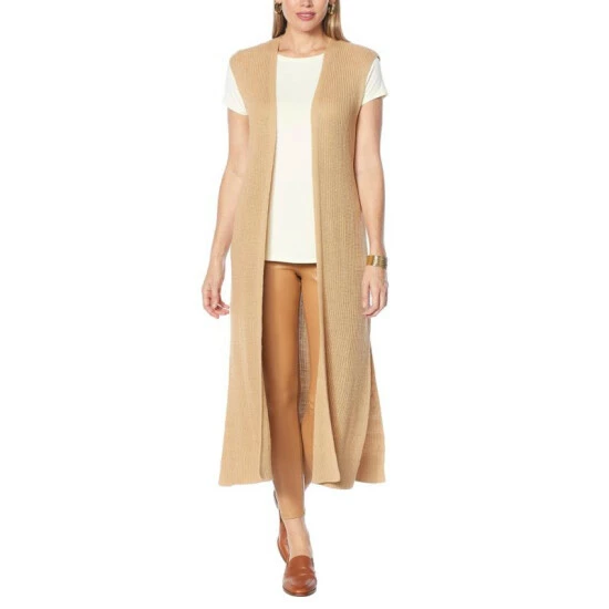 Transitional weather, transitional style. This ribbed duster-length sweatervestis the perfect half-there layer for those cold-in-the-morning, groggy-in-the-afternoon days.