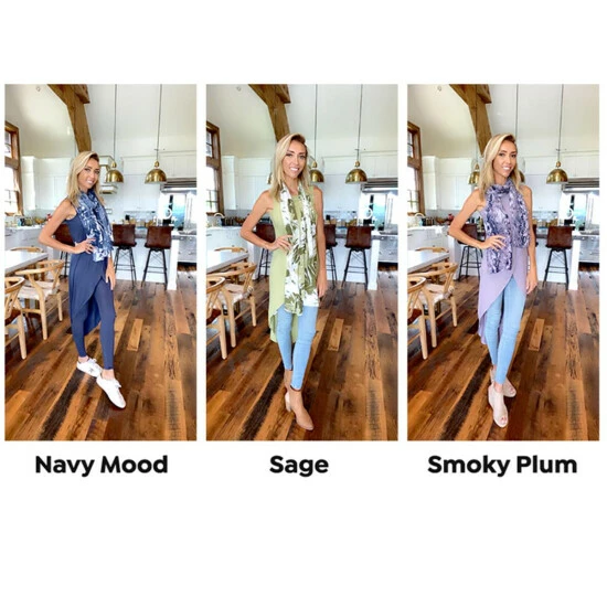 | Additional Features: | Includes printed, lightweight gauze scarf |