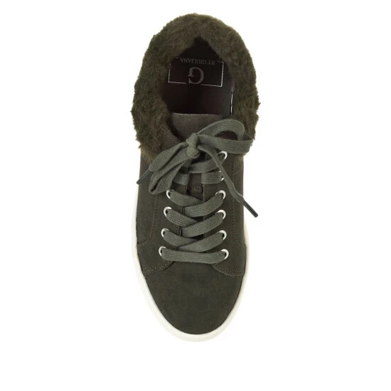 Fashionable faux fur trim and a sporty lift give afresh, winterizedattitudeto this lace-up sneakerfrom G by Giuliana.