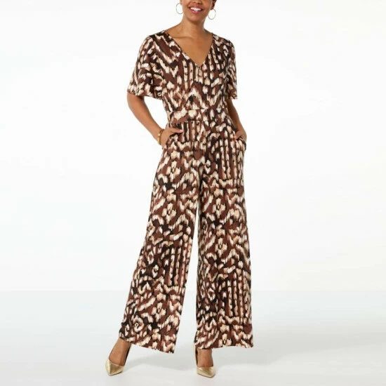 Jump into days-long comfort and figure-flattering style with G’seffortless,wide-leg stretch knitjumpsuit.