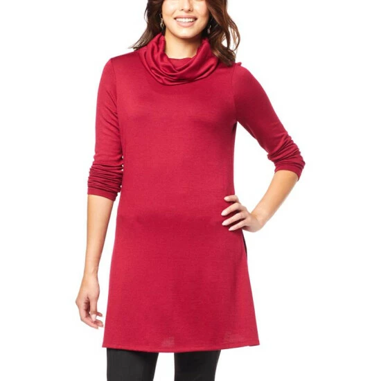 This endlessly wearable tunicis topped with a cozy, drapedturtleneck that adds extra warmth βand a substantial dose of style.