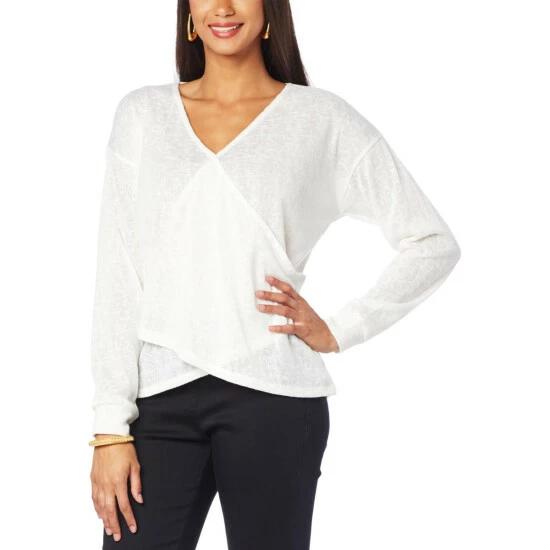 G by Giuliana Hacci Slub Knit Cross-Front Pullover
