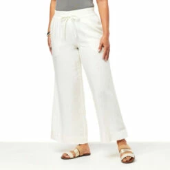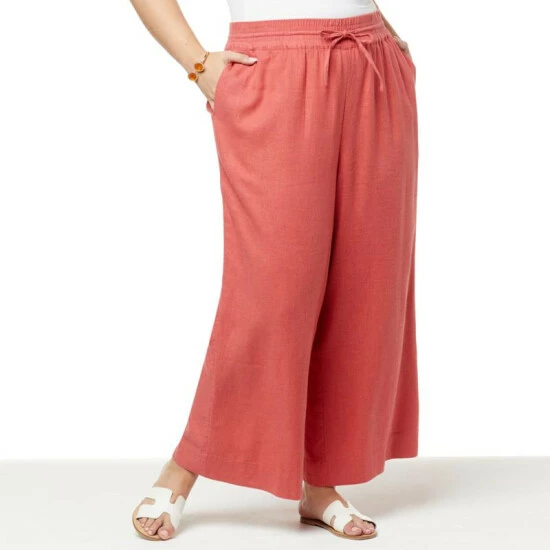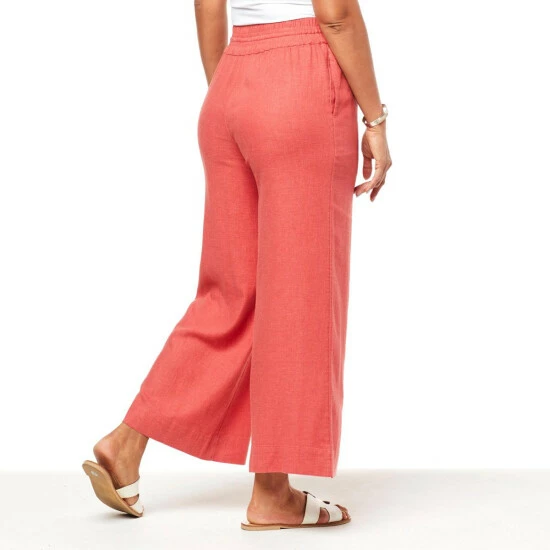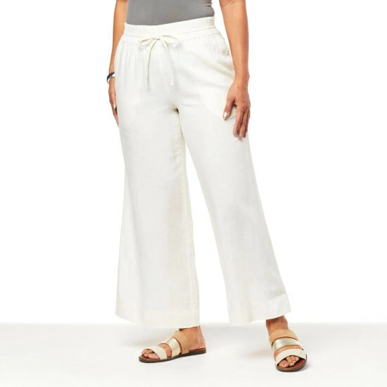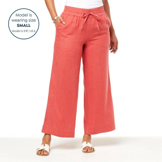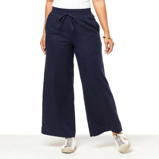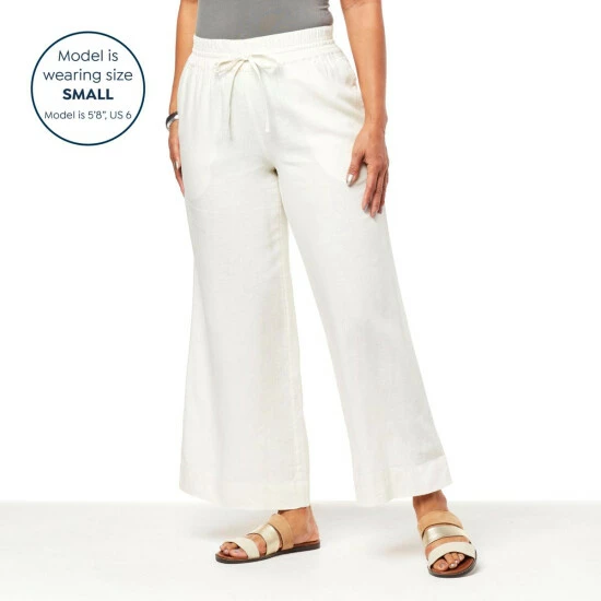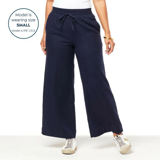 Sweet as sugar! Sugar-washed linen-blend fabricgivesthis wide-leg, pull-on panta chic, vintage look you’ll love to rock all summer long.
