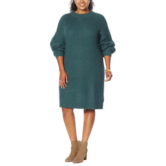 Make an easy transition from work to weekend in this soft, textured sweater knitdress from G by Giuliana. Styled with statement sleeves and a mock turtleneck, it combines warm comfort and a figure-flattering silhouettefor a cold-weather favorite.