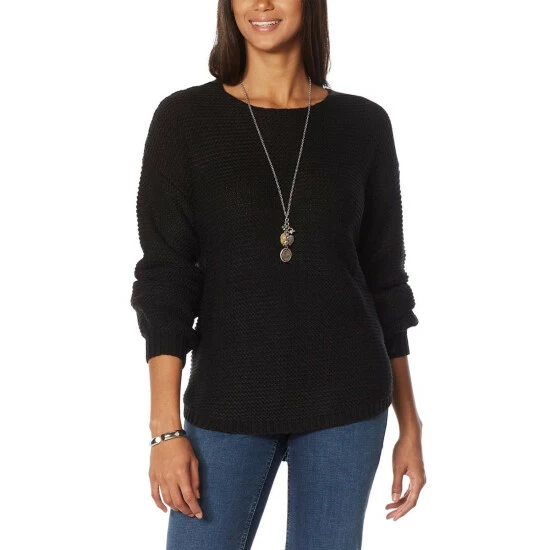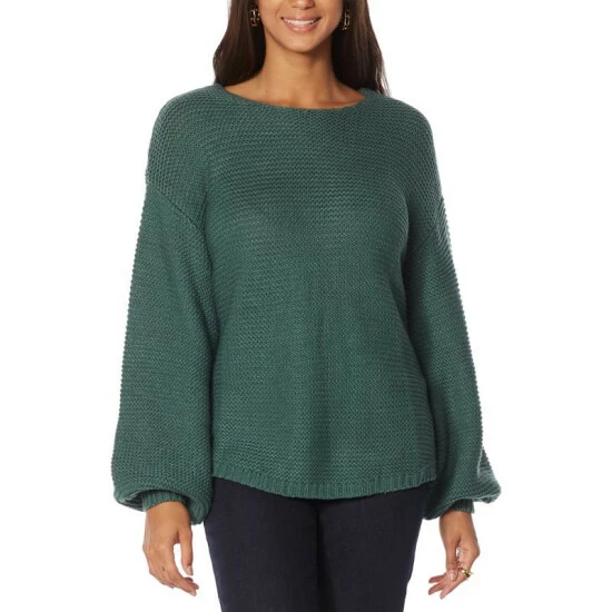Classically understated, the chunky, texturedknit of this oversizedsweater makes an easy statement whether worn for a day of shopping or a dinner out.