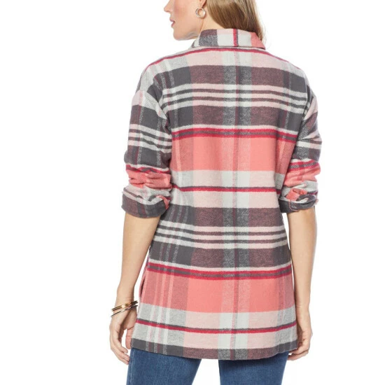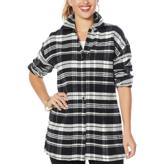 A new twist on an iconic favorite, this plaid flannel shirt in a longer tunic length can be buttoned and tucked in,tied in front or layered over a tankto look perfect with leggings, skinny jeans and more.