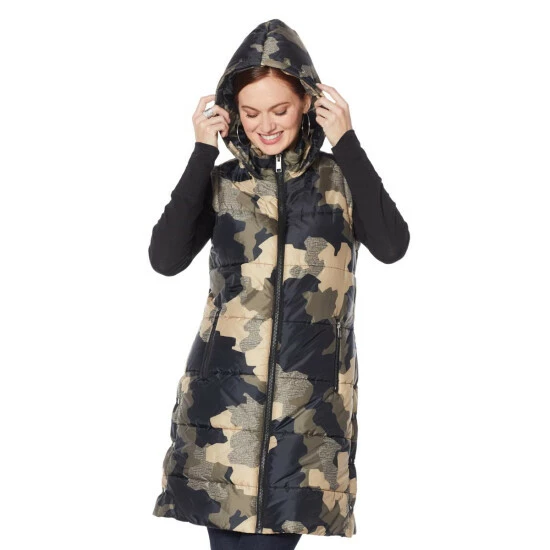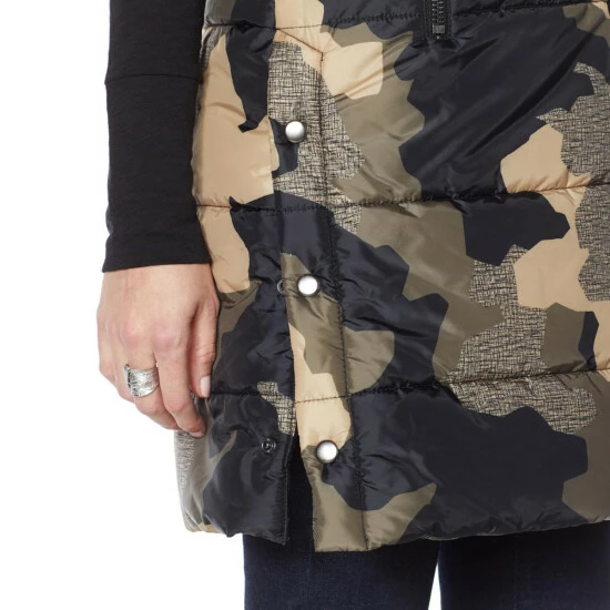 Snap sides and exposed zippers add flair to this versatile, fleece-linedvest. A wonderful transitional piece, with a hood for chilly (or drizzly) days.