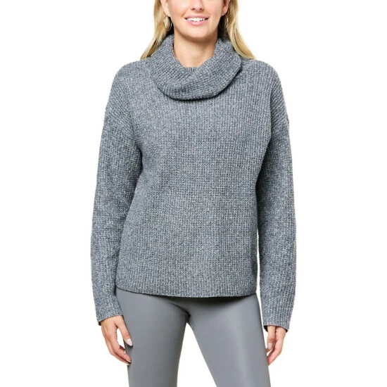 Curl up in the cozy comfort of this waffle knit cowl neck sweater, perfect for fall.