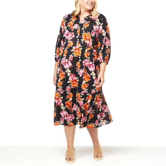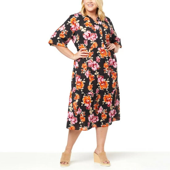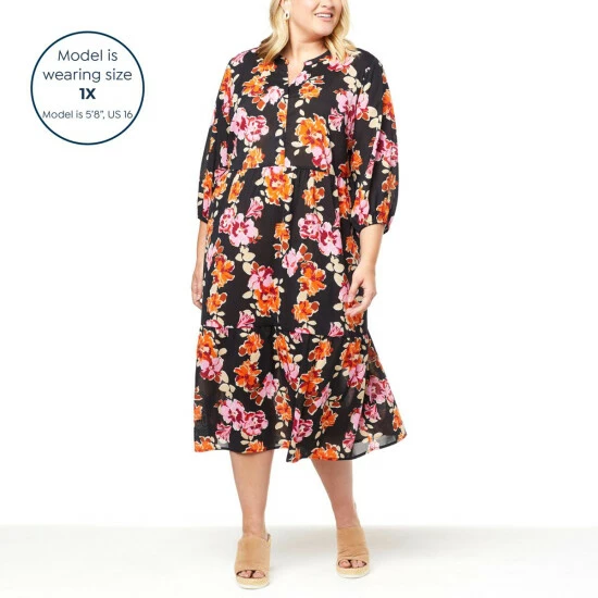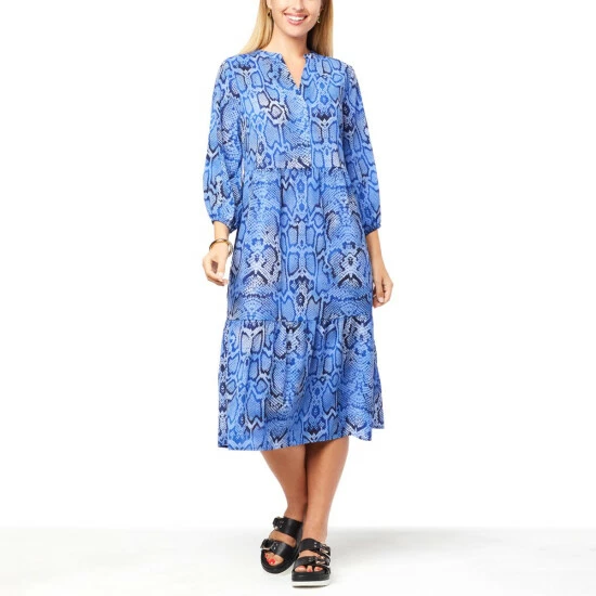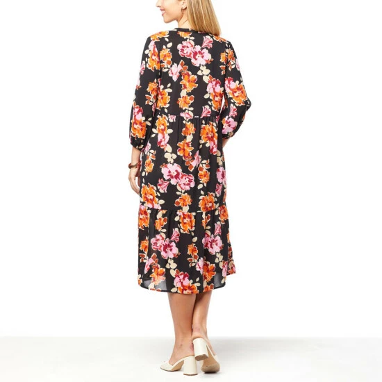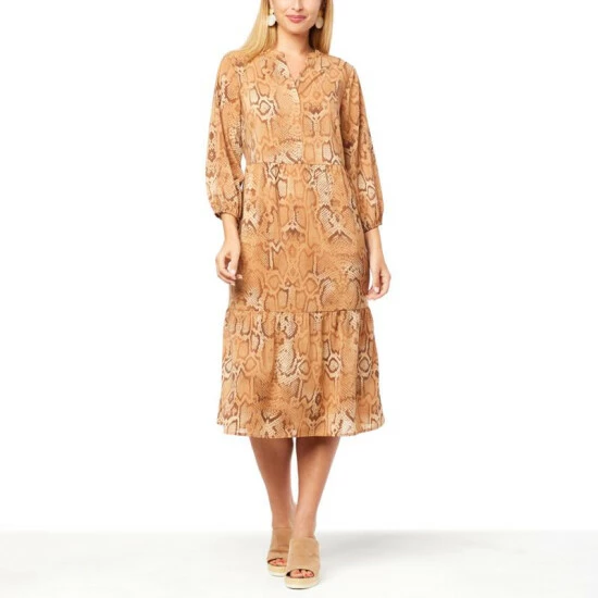 Defined by loose, breezy tiers and soft shirring, this flattering midi dress exudes a romantic Cottagecore vibe. Pair this versatile staple with casual sandals and chunky Boho jewelry for spring and summer, and then add gauzy layers or a long winter coat and tall boots when the weather turns cold.